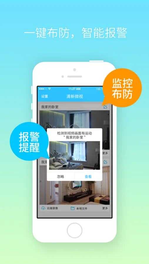 清新微视除了视频观看、语音对讲、抓拍、录像、远程回放和云台控制以外,还有以下几个亮点功能: