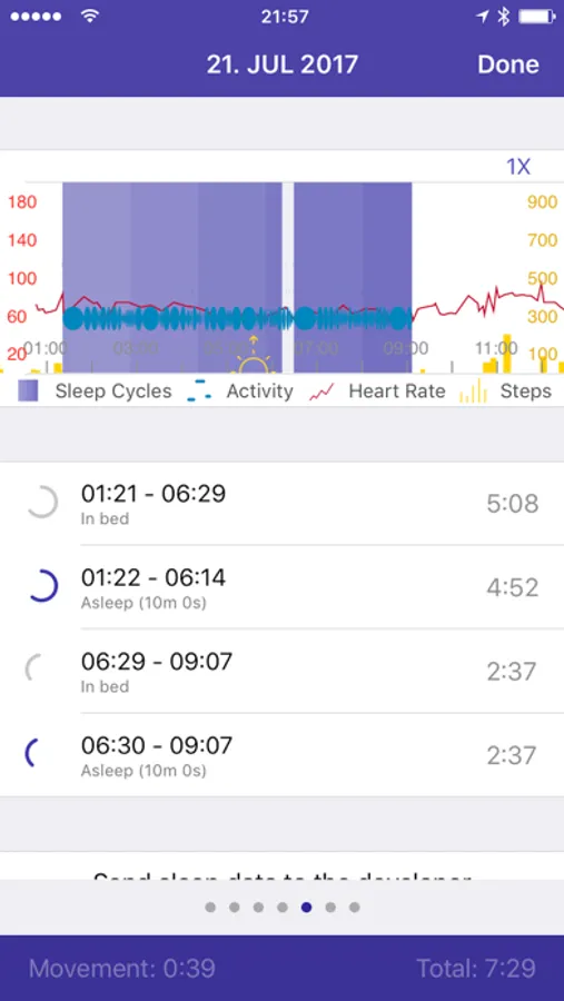 Connect Sleep Diary to Apple's Health to share your sleep data between them. App will ask you to turn reading and writing of sleep analysis data automatically after the first launch.