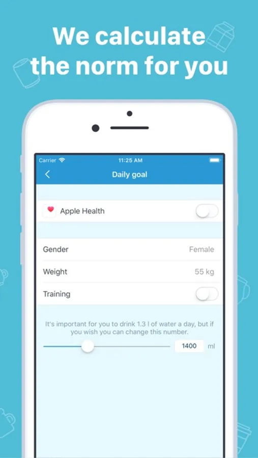 Water is essential for life on our planet. Roughly 70 percent of the body is made of water. We require water for almost every function within our bodies, from flushing out toxins to digestion. Water is essential to good health, yet needs vary between individuals. This app can help ensure you drink enough fluids.