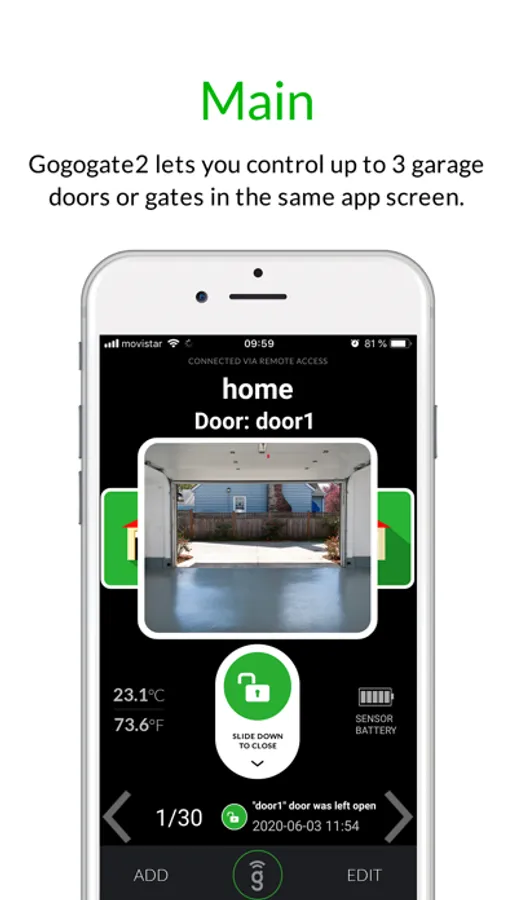 *This APP (when used in conjunction with the GoGoGate 2 device) will open up to 3 garage doors