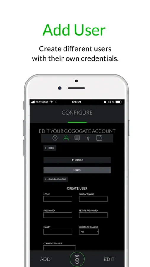 The GoGogate app will connect your iPhone or iPad to the GoGogate device via your Wi-Fi home network or internet