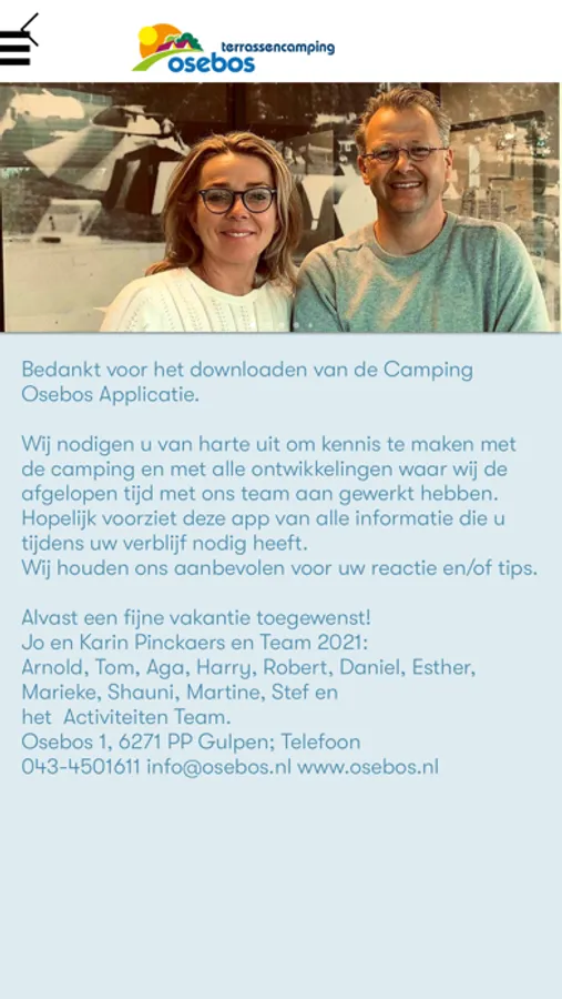 In de Camping Osebos app vindt u alle informatie die u kunt gebruiken tijdens uw verblijf op Camping Osebos.