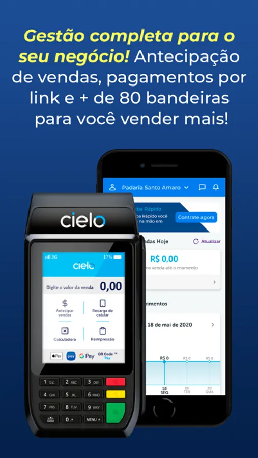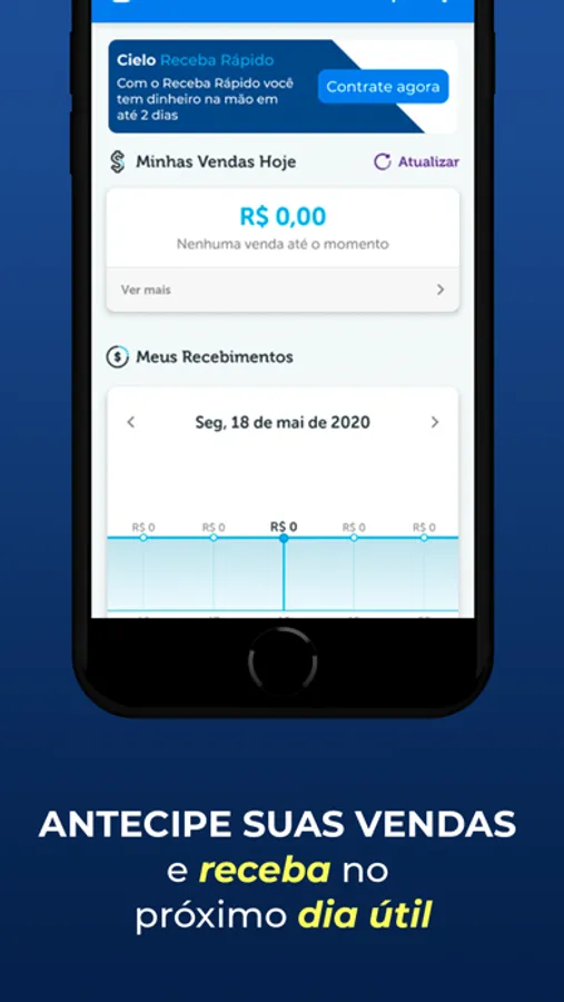 Com a Cielo você pode antecipar as suas vendas e receber em até 1 dia útil! Além disso, também é possível fazer a simulação de suas vendas. A Cielo é a solução completa para o seu negócio, baixe o app e saiba mais!