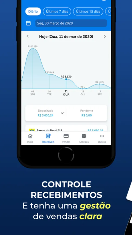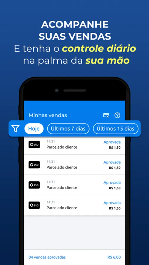 Gerencie vendas feitas em sua maquininha de cartão e controle recebimentos de forma simples. Acompanhe em tempo real suas vendas: tenha acesso às informações de recebimentos do dia e pagamentos futuros dos clientes.