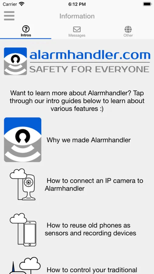 Alarmhandler is like no other security system you've seen. It integrates SMS based alarm systems, IP cameras, and old phones of any make into a cohesive alarm system controlled by one app. Signup for a free 30 day camera surveillance trial in the app, no credit card required. If you just use the app to control your SMS alarm, it's free, forever.