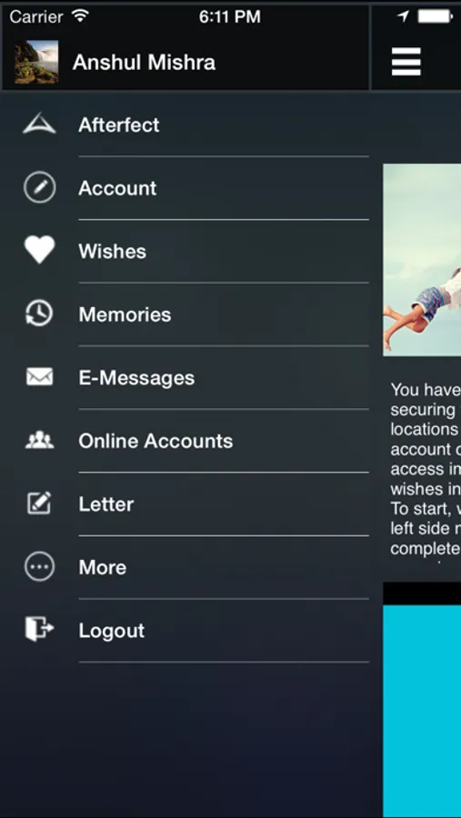 Afterfect, the premier online platform where you can securely store your personal information making it accessible to your family and friends in the event of your passing. Afterfect was founded under the principle of offering our users real-world solutions to all of their online document and information storage needs. Join us today; it’s free to join and easy to get started.
