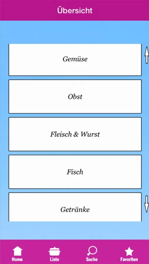 Gemüse, Früchte, Fleisch und Wurst, Fisch und Meeresfrüchte... - dank einer praktischen Aufteilung in Kategorien finden Sie sofort alle Informationen, die Sie benötigen!