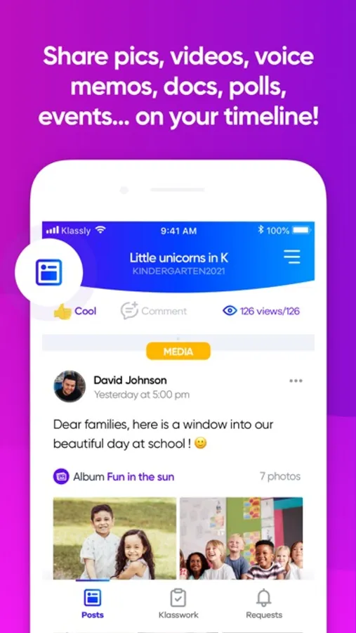 The inviting and user friendly social media layout ensures even the less tech savvy educators and families will feel comfortable interacting and bonding on Klassly.