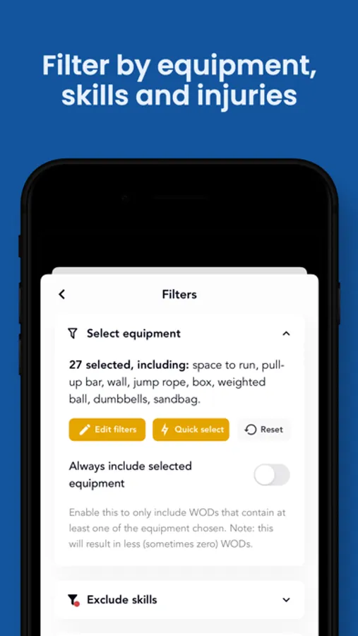 - Filter by the equipment you have (basic for free, advanced for Pro)