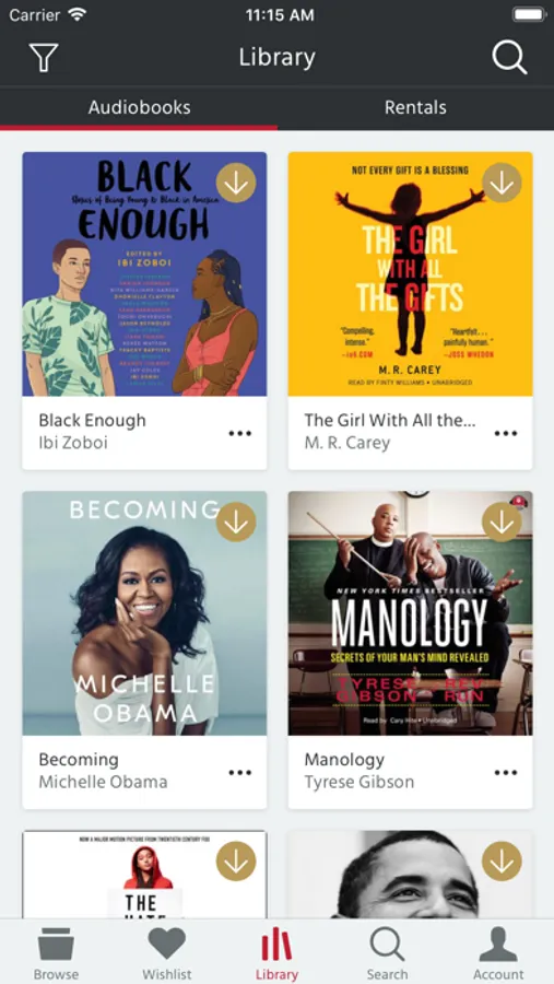 • Download audio books directly over Wi-Fi and cellular networks for offline listening