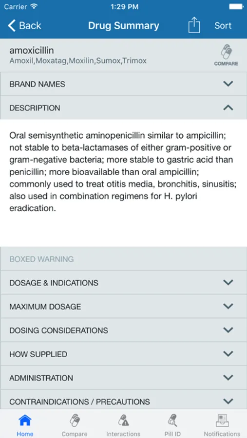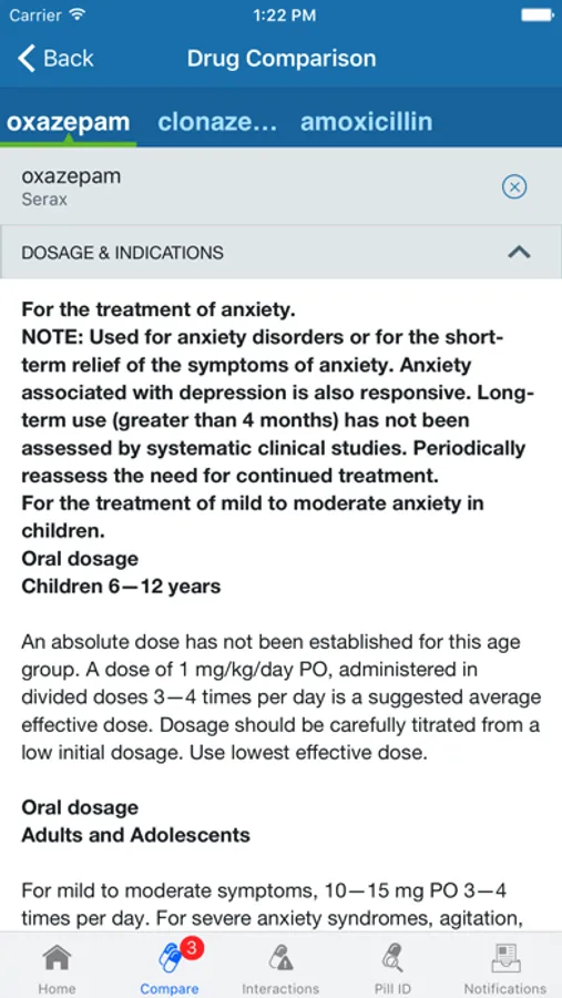 - Swipe left-right to compare key drug characteristics such as dosing, indications, and side effects