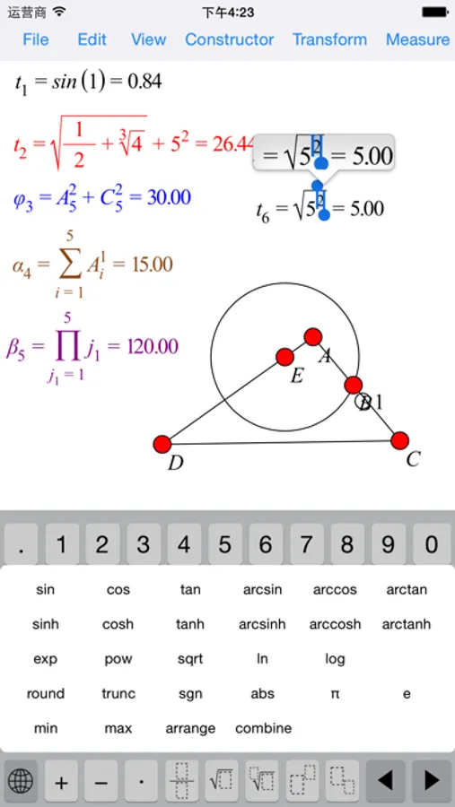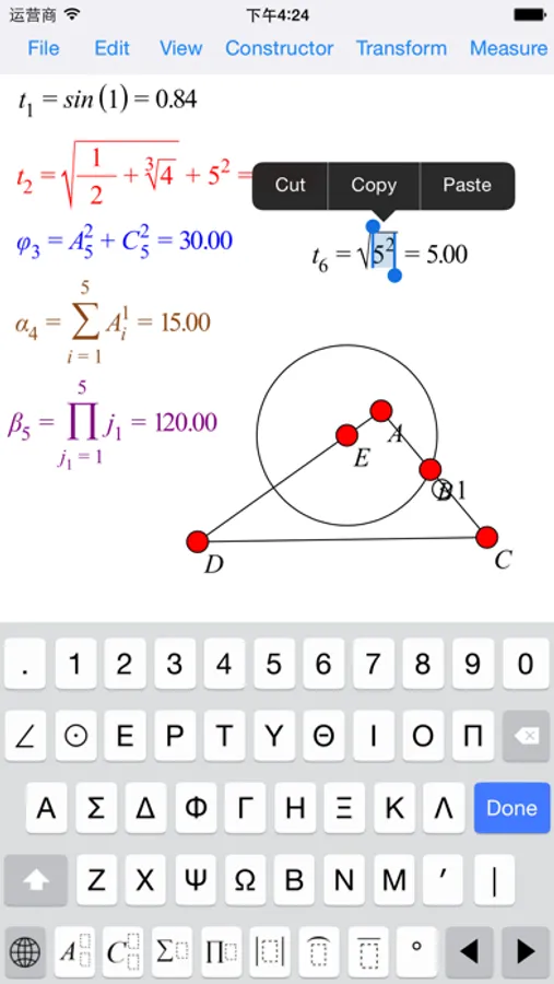 - Sketchpad provides fractional, radical, radical times, index, subscript, A superscripts arranged formula, C and superscripts combination formula, Σ summation formula, Π quadrature formula also provides Greece enter letters, overline formula (expressed segments), the arc formula (expressed arc) and other mathematical formula, the formula can be pre-cut, copy, paste, natural way to enter, the natural way to edit, and consistent operation iOS text edit.