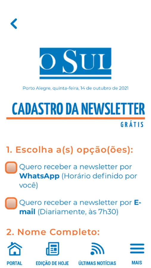Aplicativo do Jornal O Sul, um veículo da Rede Pampa de Comunicação.