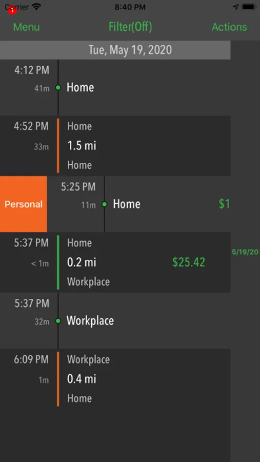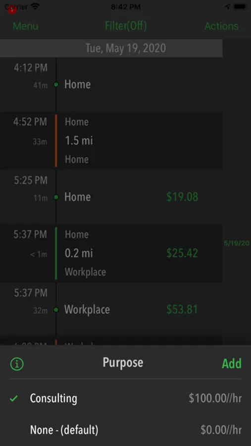 Simple swipe to categorize trip as Personal or Business. Add custom purposes with custom rates per mile. Use custom purposes accurately record business miles and reimbursements. No need to install a GPS tracker. Data is exported in spreadsheet file. It can be viewed and edited further in Numbers app, Microsoft Excel, Google Sheets.