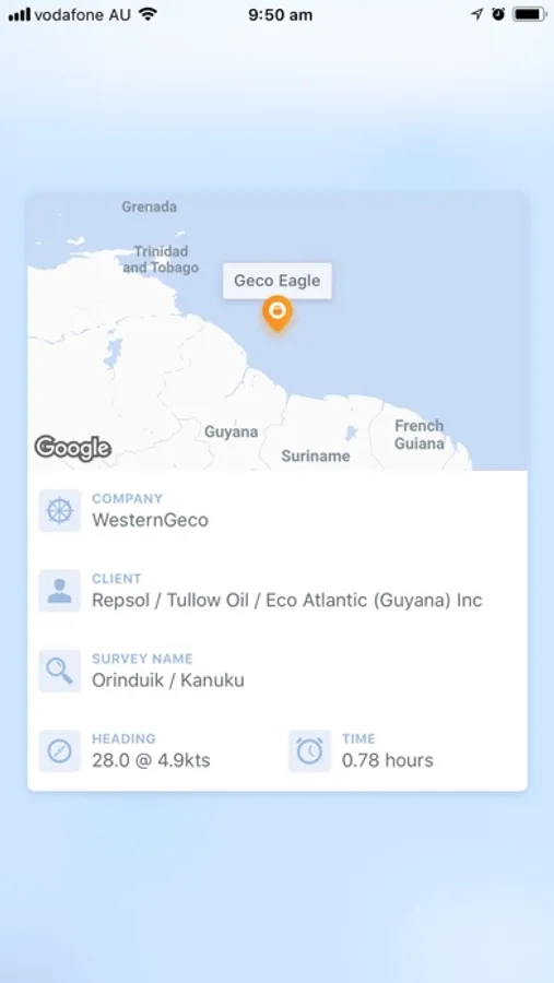 The Vessel Searcher app was developed to answer the perennial question asked by hydrocarbon exploration companies and seismic contractors alike……‘Where on earth is that seismic boat?’