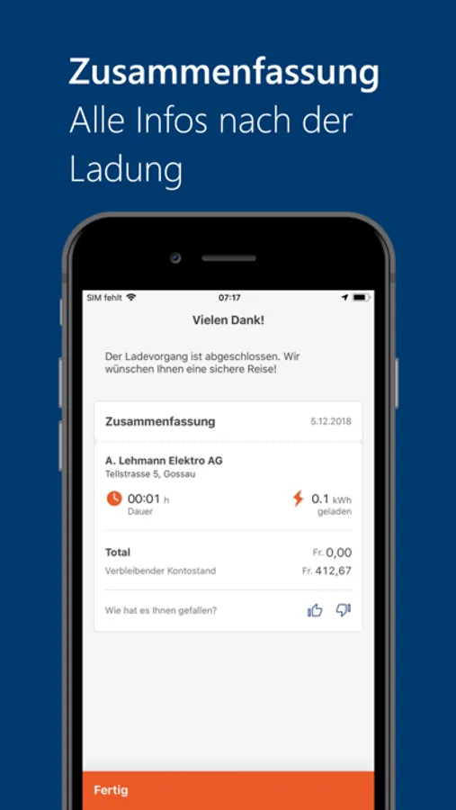 - Bezahle die bezogene Ladeleistung bequem mit dem Smartphone oder per Kreditkarte.