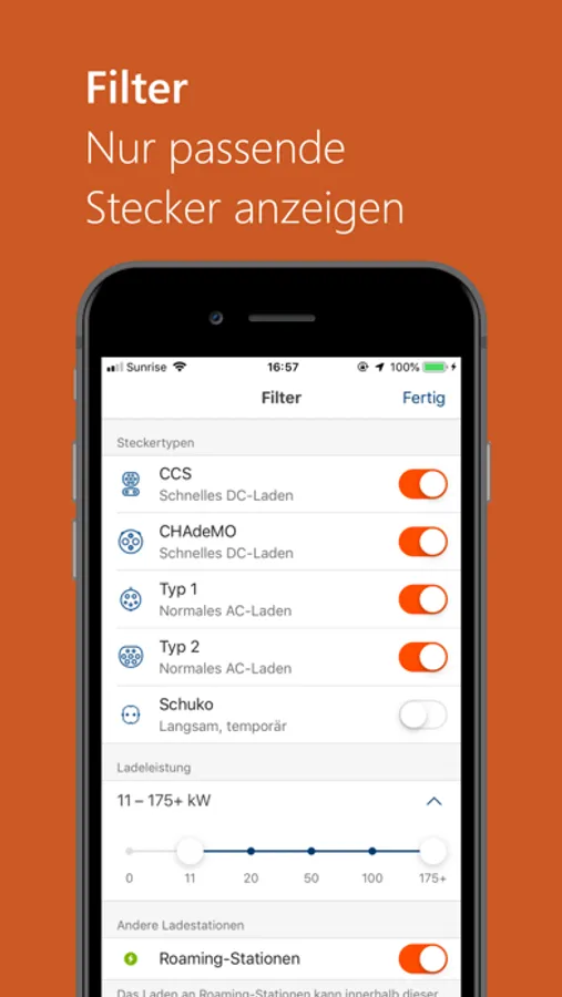 - In Echtzeit siehst du, ob eine Ladestation gerade verfügbar oder besetzt ist.