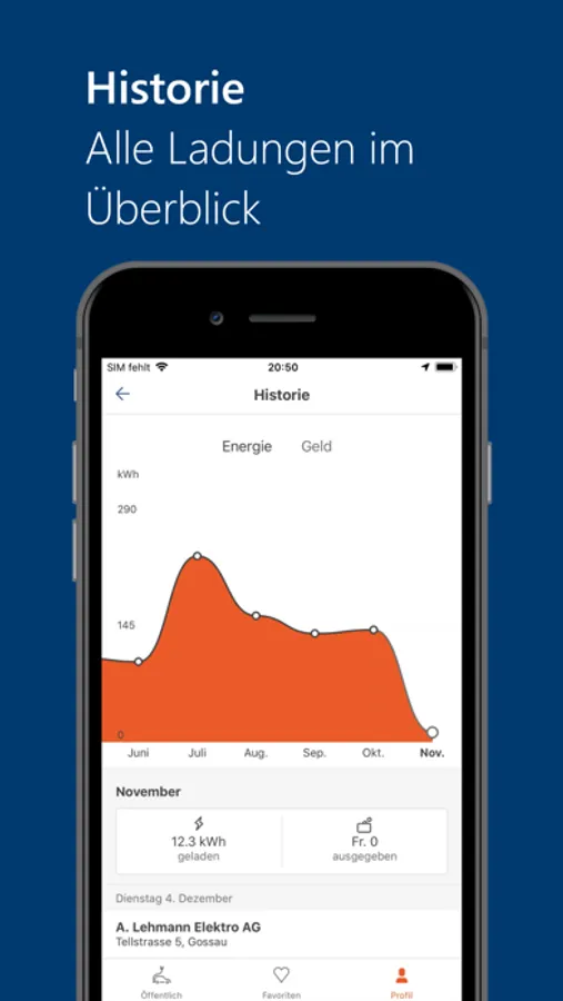 - Dank der History hast du jederzeit den Überblick über alle deine Ladevorgänge.