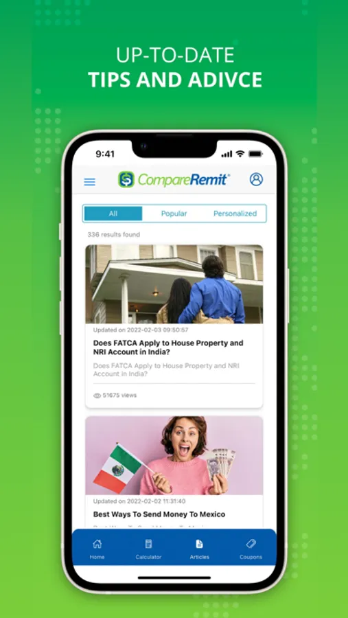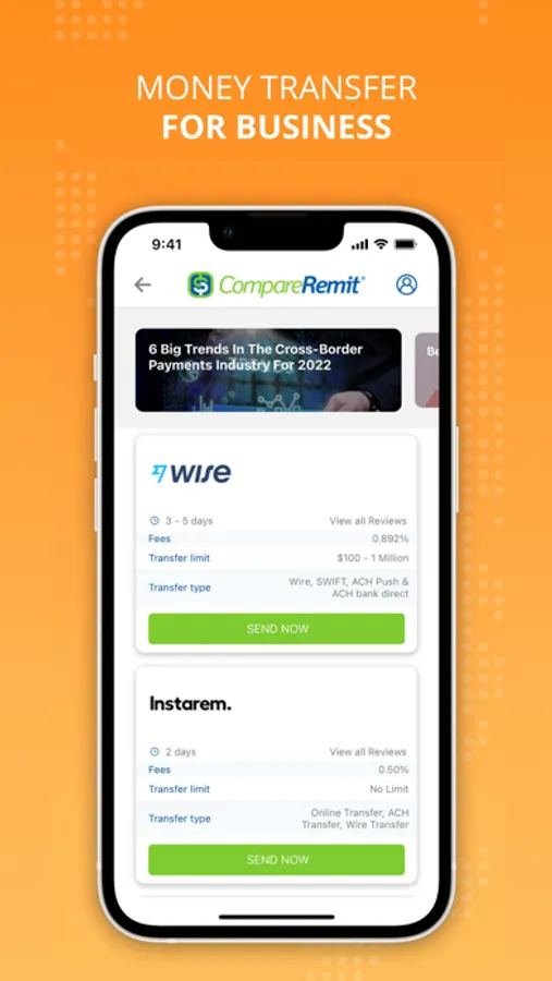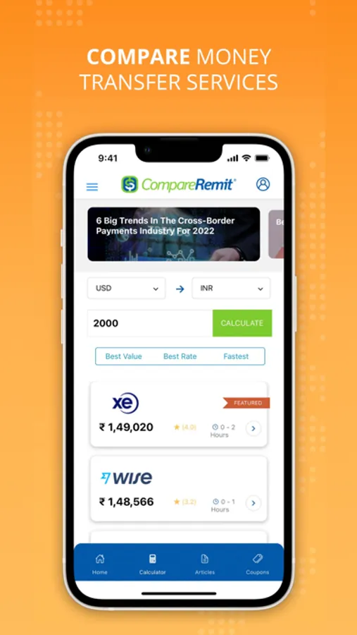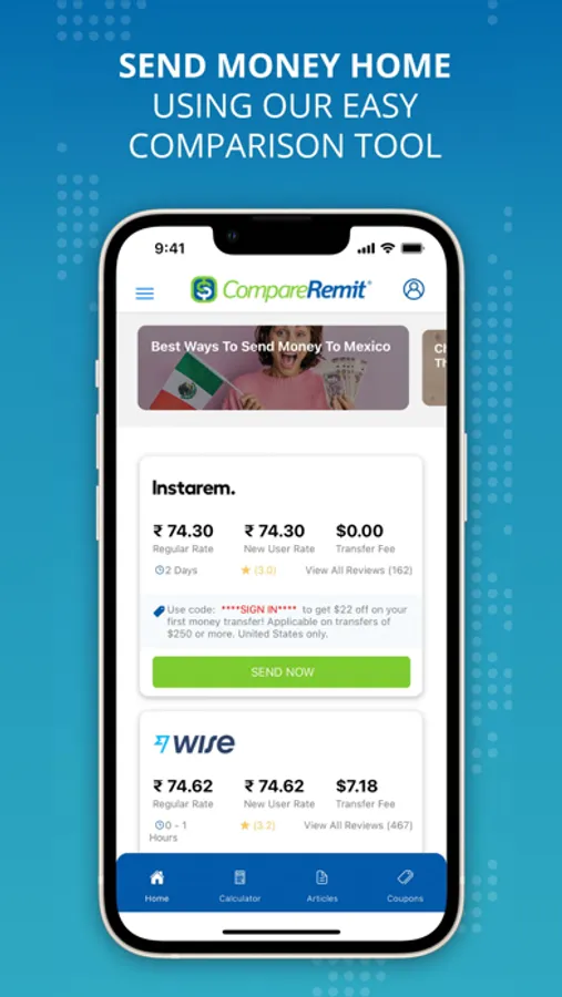 The popular CompareRemit App has undergone a major overhaul and is now even better, snazzier, and faster! The newly revamped app helps you compare money transfer services and find exchange rates in real-time, helping you find the best way to send money. You can find the exchange rate, review money transfer companies, and compare them so that you get the best value for your dollars.