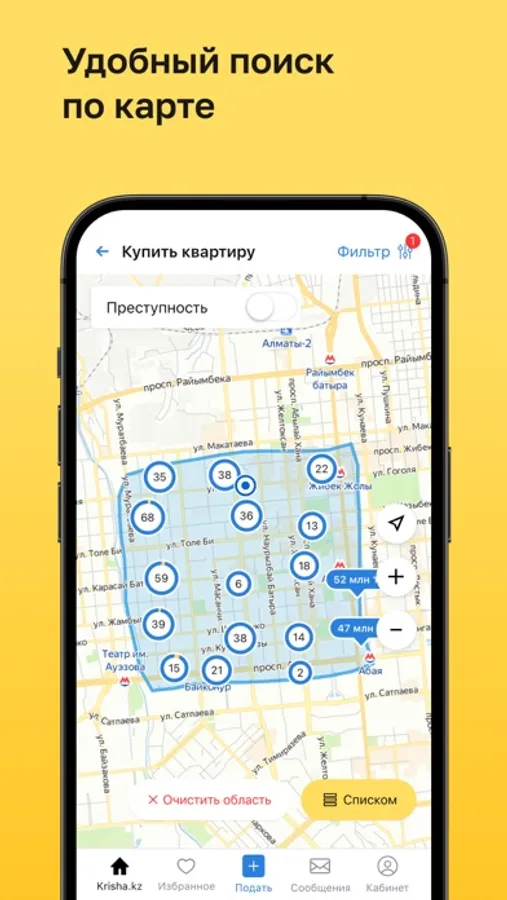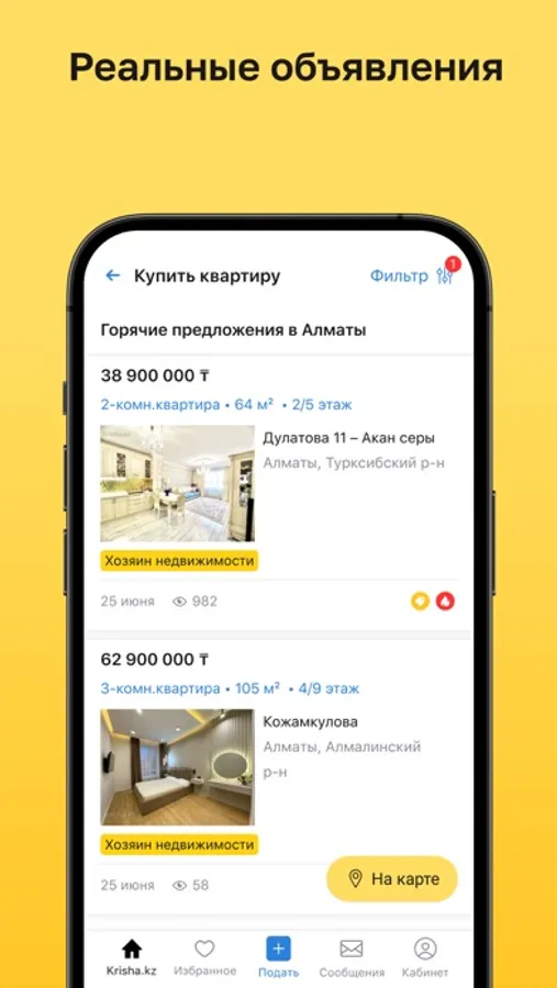 Приложение Крыша кз дает вам неограниченный доступ к купле и продаже недвижимости (домов, квартир) в городе Нур-Султан (Астана), Алматы, а также по всей территории Казахстана: