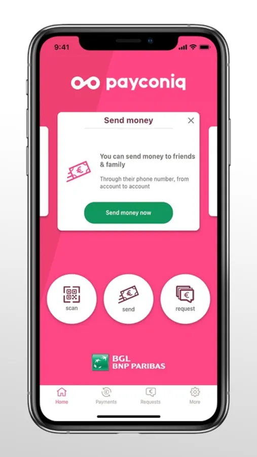 The BGL BNP Paribas Payconiq App is linked both to your phone number and your bank account(s). It meets banking-grade security standards; all payments are authorised with your biometrics or your PIN Code. You can set your security limits according to your preferences (default: EUR 2,500). Payments are made using (SEPA) bank transfer (funds may only be available the next working day).