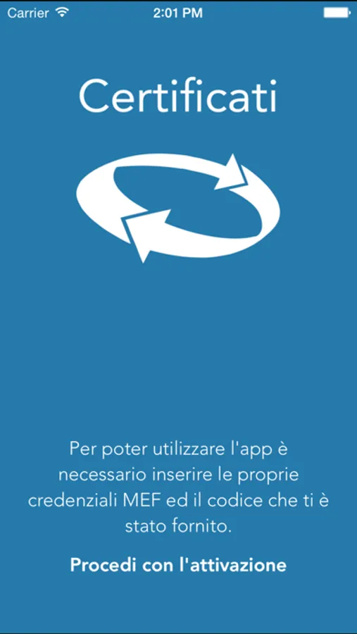 *** ATTENZIONE! Per utilizzare l'app Certificati è necessario essere in possesso delle credenziali MEF e del codice di attivazione precedentemente fornito. ***