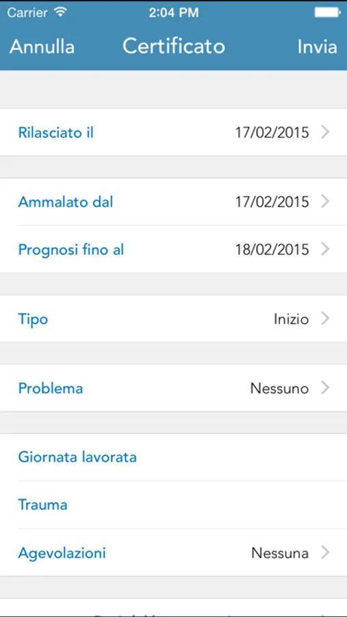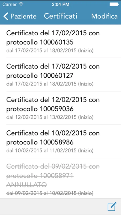 - Visualizzare lo storico dei certificati INPS inviati per il paziente