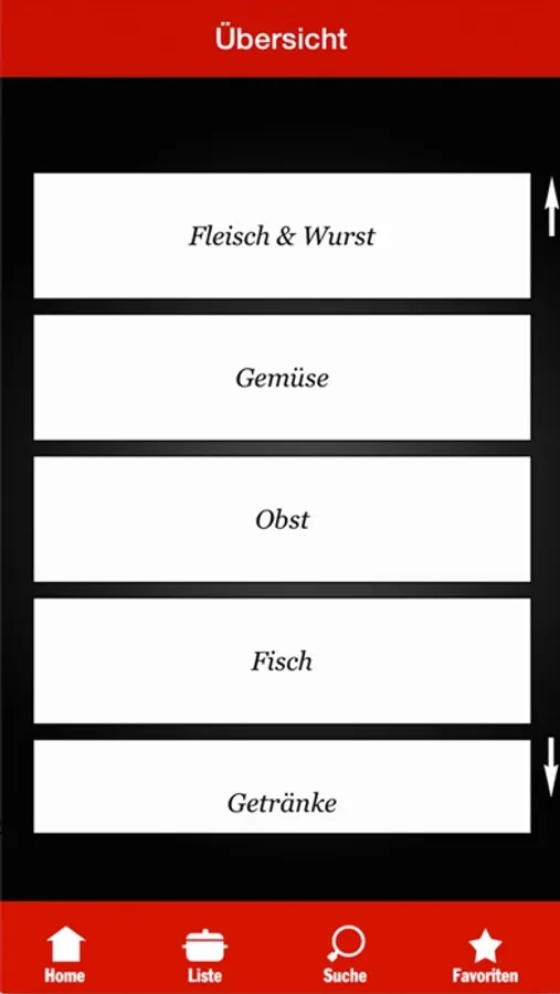 Gemüse, Früchte, Fleisch und Wurst, Fisch und Meeresfrüchte... - dank einer praktischen Aufteilung in Kategorien findest du sofort alle Informationen, die du brauchst.