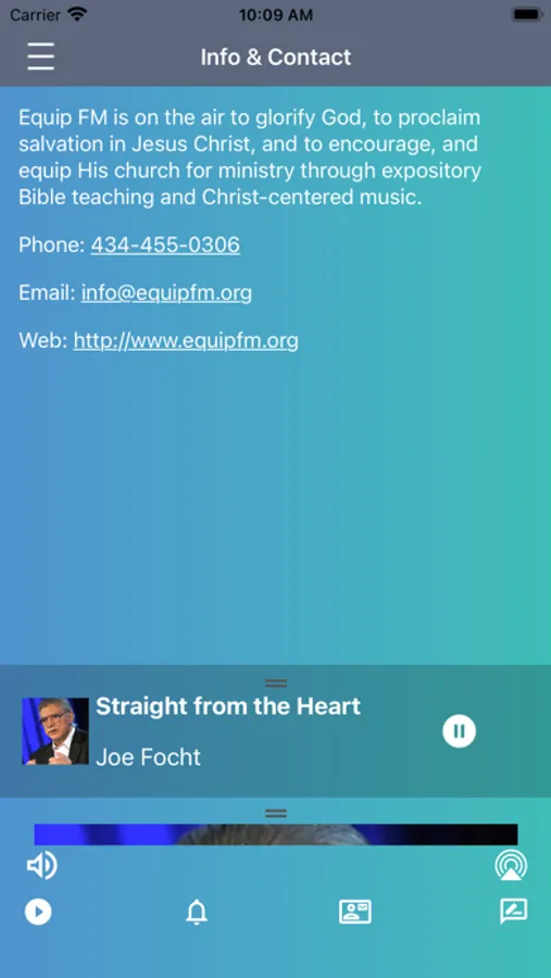 Equip FM is on the air to glorify God, to proclaim salvation in Jesus Christ, and to encourage, and equip His church for ministry through expository Bible teaching and Worship music.