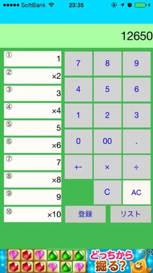 4. change to the calculation results are displayed "=" is "registration" button! You can save the calculation result.