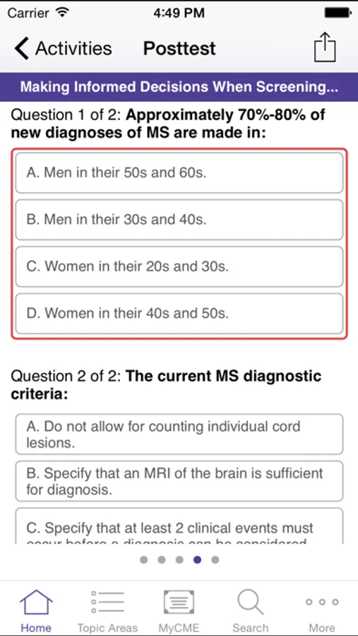 To earn FREE CME credit, use your current MSCMEAcademy.com login or register directly from the app. Simply select an activity of interest and view or listen to the material. Each activity requires a pre- and post-test. When the post-test is completed, your CME certificate will be e-mailed to you directly.