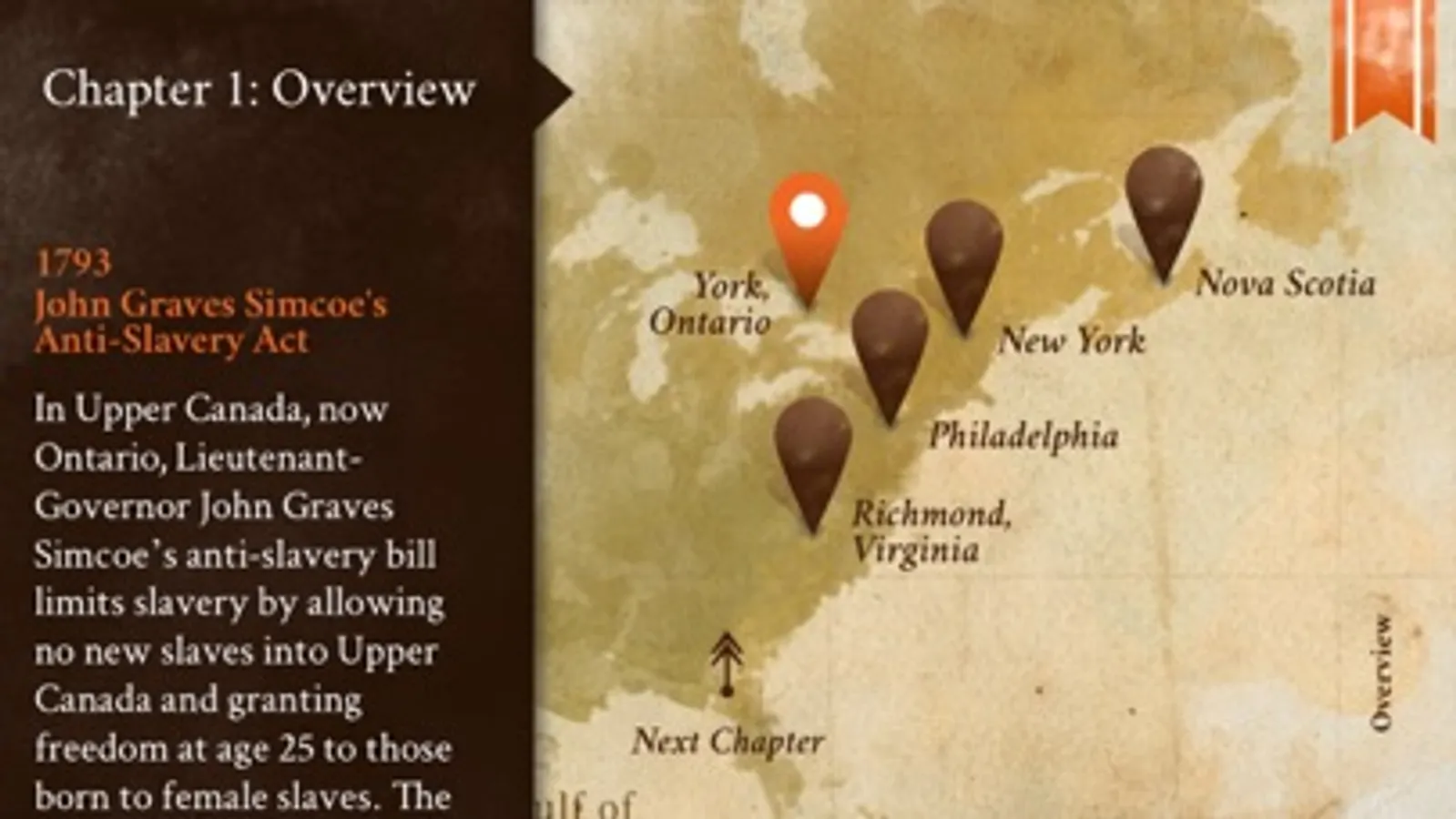 Over seven chapters, the app provides a timeline of Black history from 1705 to the present day. In addition, it explores the historical grounding of both the novel and series in the original Book of Negroes historical document, which identified Black slaves who fought for the British during the American Revolution.