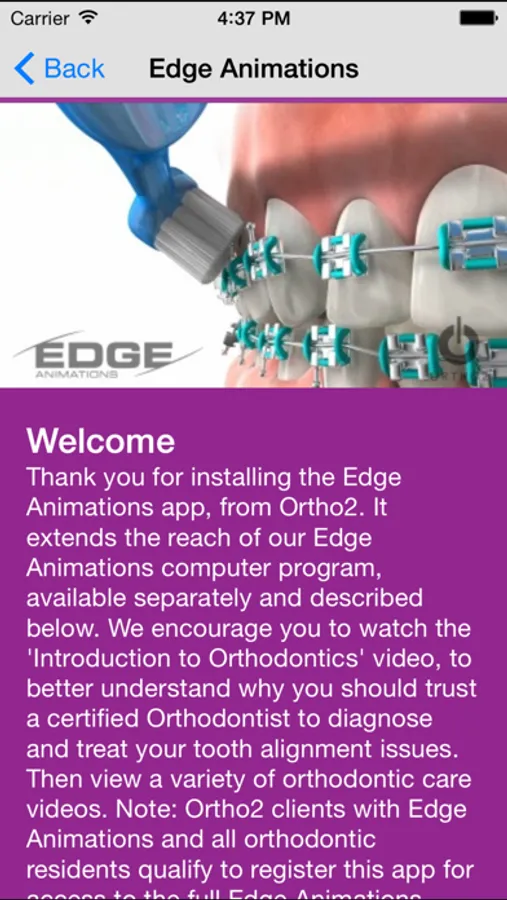 All users can view select videos, including an "Introduction to Orthodontics", which helps patients understand and appreciate the orthodontic difference. Orthodontic residents and Ortho2 users who have licensed Edge Animations can register for access to the entire video library.