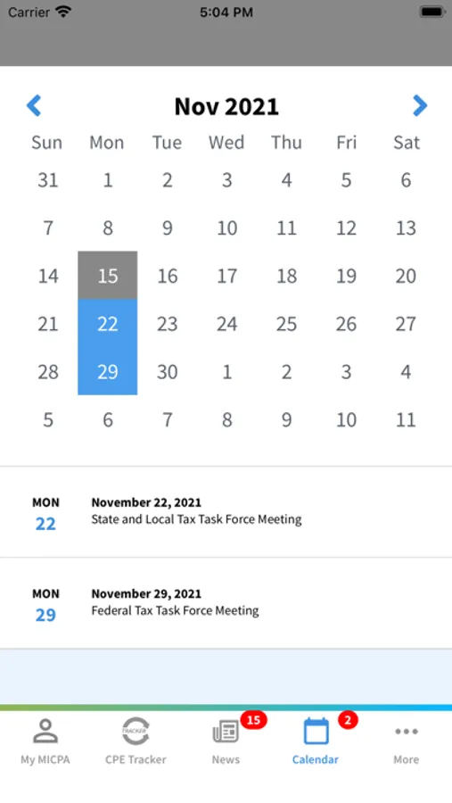 - Get reminders, maps and calendar tracking for your upcoming MICPA events and task force meetings