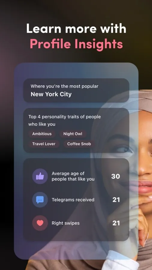 * Profile Insights that show where you’re most popular, the total number of swipes and more