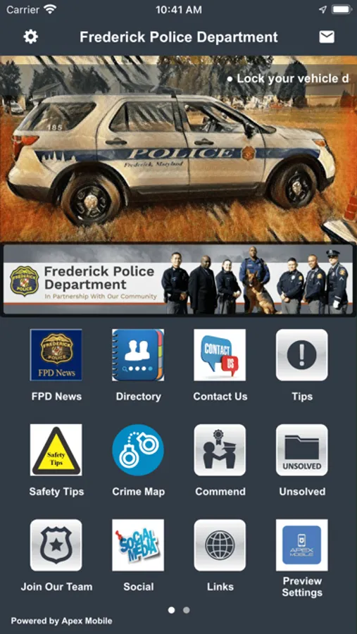 Welcome to the iPhone/iPad app for the Frederick Police Department. The Frederick Police Department app allows users to report issues or concerns directly from your iPhone or iPad, with photos and video. There are useful links for community resources, crime prevention, and on-line reporting!