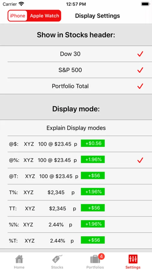 Watch My Stocks - a color-coded Apple Watch display of daily gains/losses and values of your stocks and stock portfolios. Use a proxy ETF to track intra-day gains/losses of mutual funds.