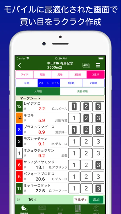 Note that the app itself doesn't have the capability to do the betting. Everything happens on the JRA web site.