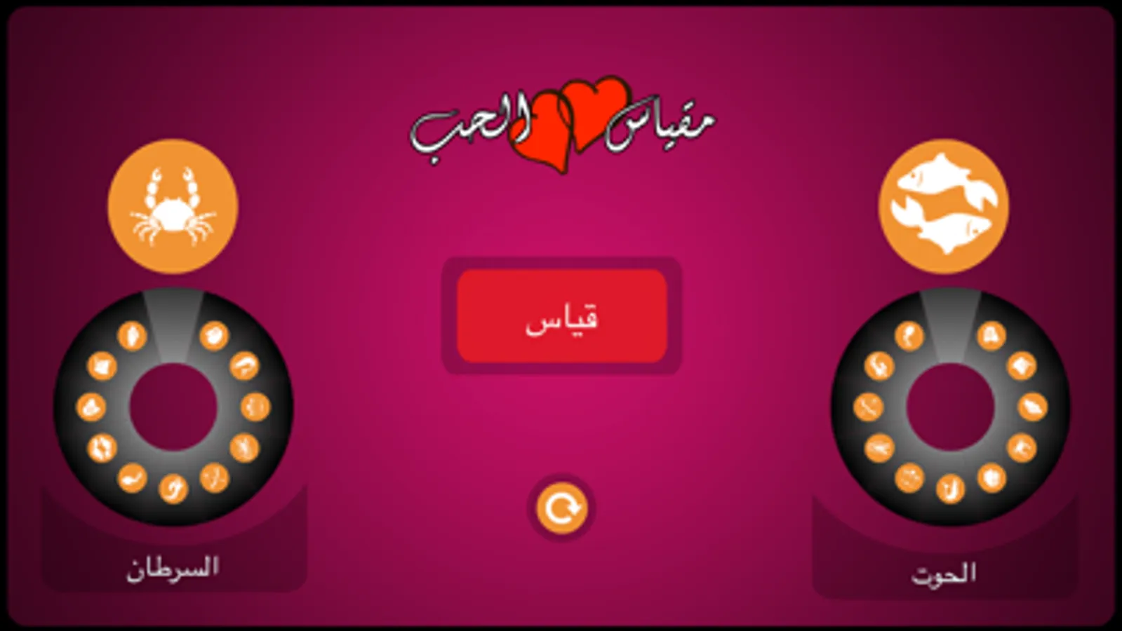 يقوم هذا التطبيق بحساب نسبة التوافق بين الشريكين اعتماداً على برج كل منهما