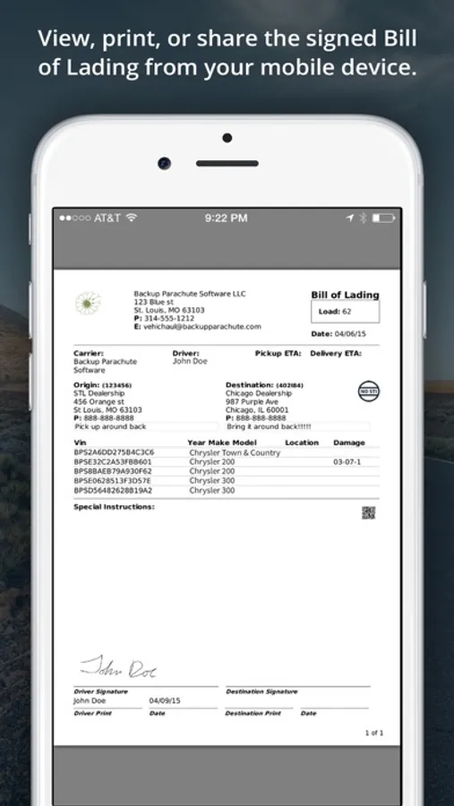- Digitally sign for and deliver loads (interfaces with Chrysler ePOD).