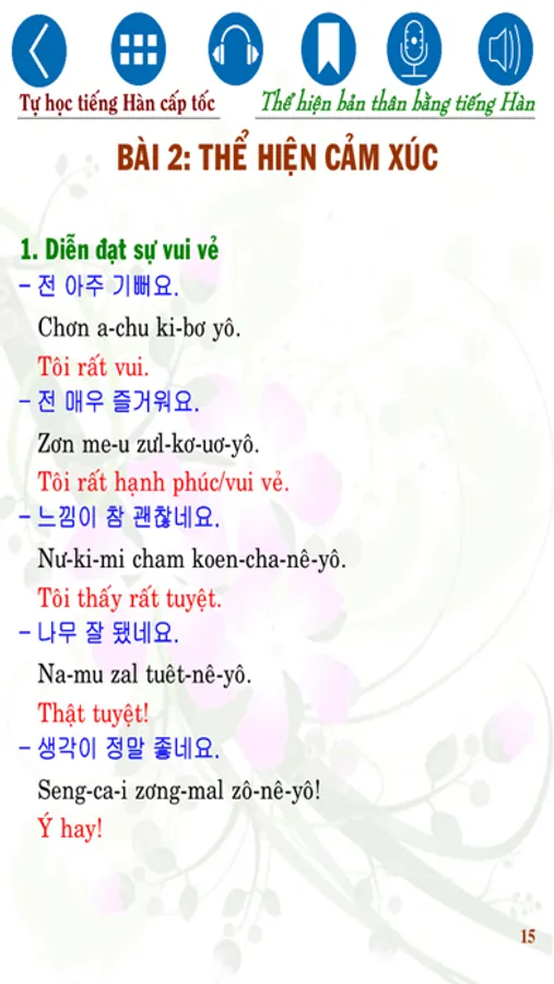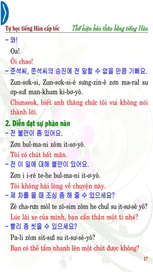 Quyển sách “영어를 급속하게 자학하기 (Tự học tiếng Hàn cấp tốc – Thể hiện bản thân bằng tiếng Hàn Quốc)” gồm 135 trang được thực hiện theo tiêu chí phiên âm theo cách đọc của người Việt và dùng để “Học tiếng Hàn mọi lúc mọi nơi” khi trong tay có chiếc điện thoại thông minh. Những tiện ích này có thể giúp các bạn mau chóng học và sử dụng thông thạo ngoại ngữ trong thời gian ngắn nhất). Trong quá trình biên soạn không khó tránh khỏi những sai sót ngoài mong muốn, hy vọng sự đóng góp quý báu từ các bạn giúp quyển sách ngày càng hoàn chỉnh hơn. Xin chân thành cảm ơn và chúc các bạn học tập hiệu quả! Những tiện ích khi bạn sử dụng Sách Thông Minh - SmartBooks của chúng tôi: Sách được tích hợp âm thanh (audio) vào trong sách, đánh dấu từng câu khi đọc, khi cần nghe lại câu vừa mới đọc hay câu nào đó thì bạn chỉ cần chạm tay vào câu đó thì sẽ phát âm thanh; Ngoài ra SmartBooks còn có tính năng thu lại giọng đọc (giọng của bạn tập đọc câu vừa học, vừa nghe) của bạn bằng cách nhấn vào nút Recorder (icon Micro), khi bạn nhấn vào icon “Headphone” “Nghe và viết”, xuất hiện màn hình có rất nhiều tính năng giúp bạn nghe và viết lại câu vừa nghe bằng phím hay bằng tay,… Sách được thiết kế để sử dụng mọi lúc mọi nơi khi trong tay bạn có chiếc Smart Phone. Đây là một bước đột phá của chúng tôi trong thời đại công nghệ số nó sẽ giúp các bạn rất nhiều trong việc học và đọc sách.
