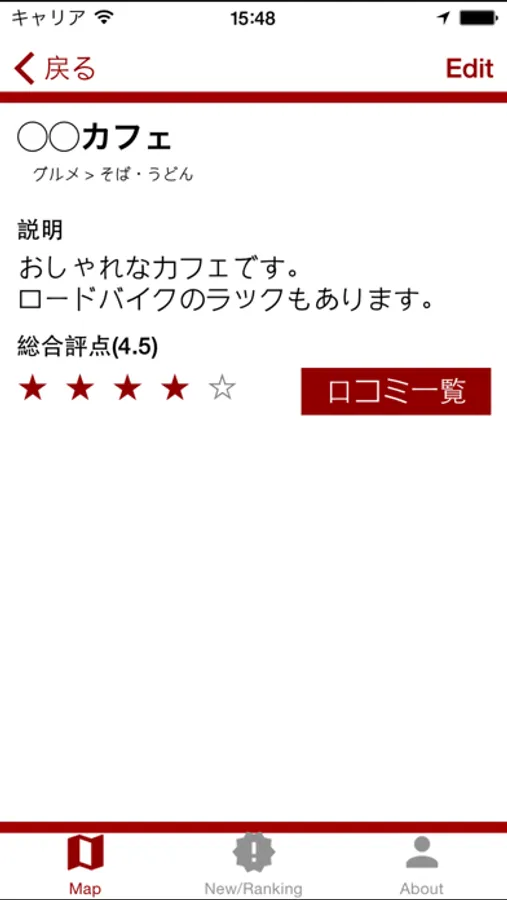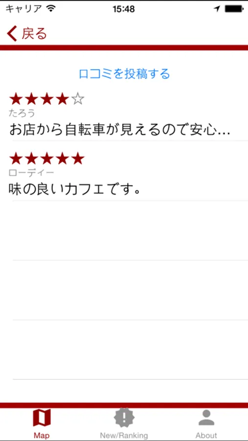 自転車・ロードバイク乗りに有益な情報(位置情報、口コミ)を投稿・検索出来ます。