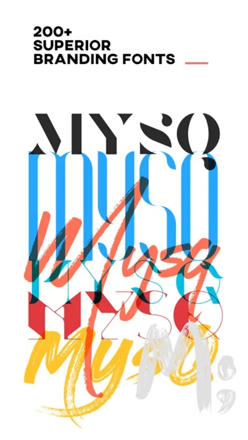 • A wide range of superior branding fonts in 9 families: Sans Serif, Serif, Signature, Brush, Script, Display, Light, Fancy, Modern
