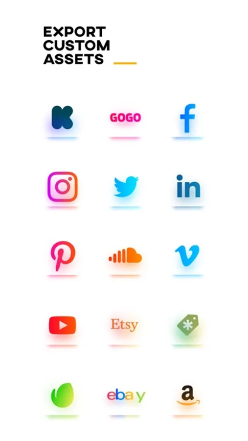 • Export for Kickstarter, Indiegogo, Facebook, Instagram, Twitter, LinkedIn, Pinterest, Soundcloud, Vimeo, Youtube, Etsy, Creative Market, Envato, Ebay, Amazon