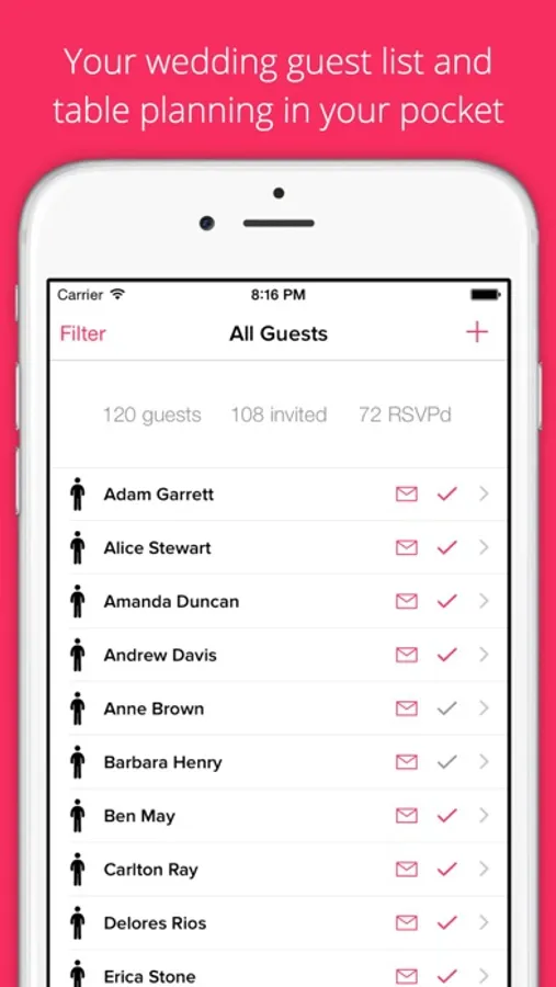 Forget about endless scraps of paper with scribbled names and doodles. Stay calm and organised with our app, it really is the best way to help you organise your special day.