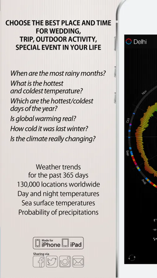 The app presents its information in an amazingly intuitive format, with a simple, user-friendly interface and single-touch access to weather trends, ranging from a single day to a year.