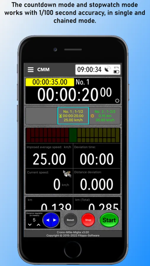 The countdown with 1/100 second accuracy, works at single and concatenated mode.