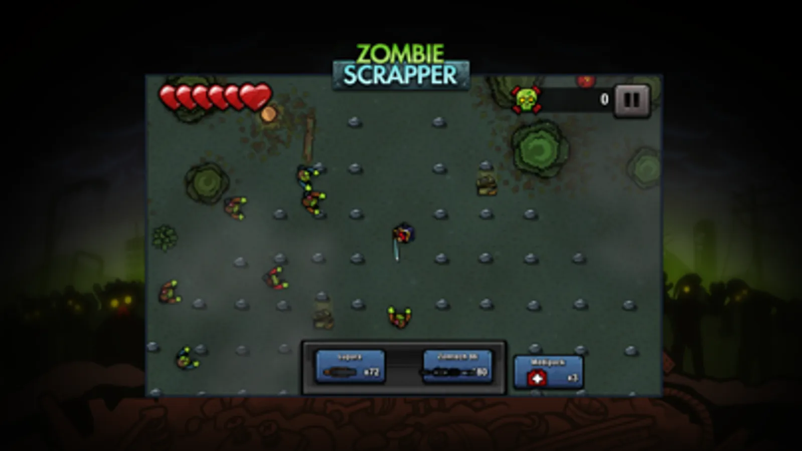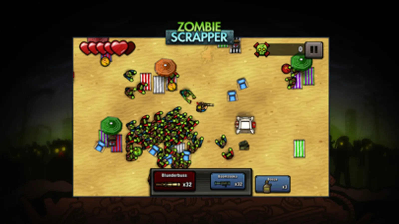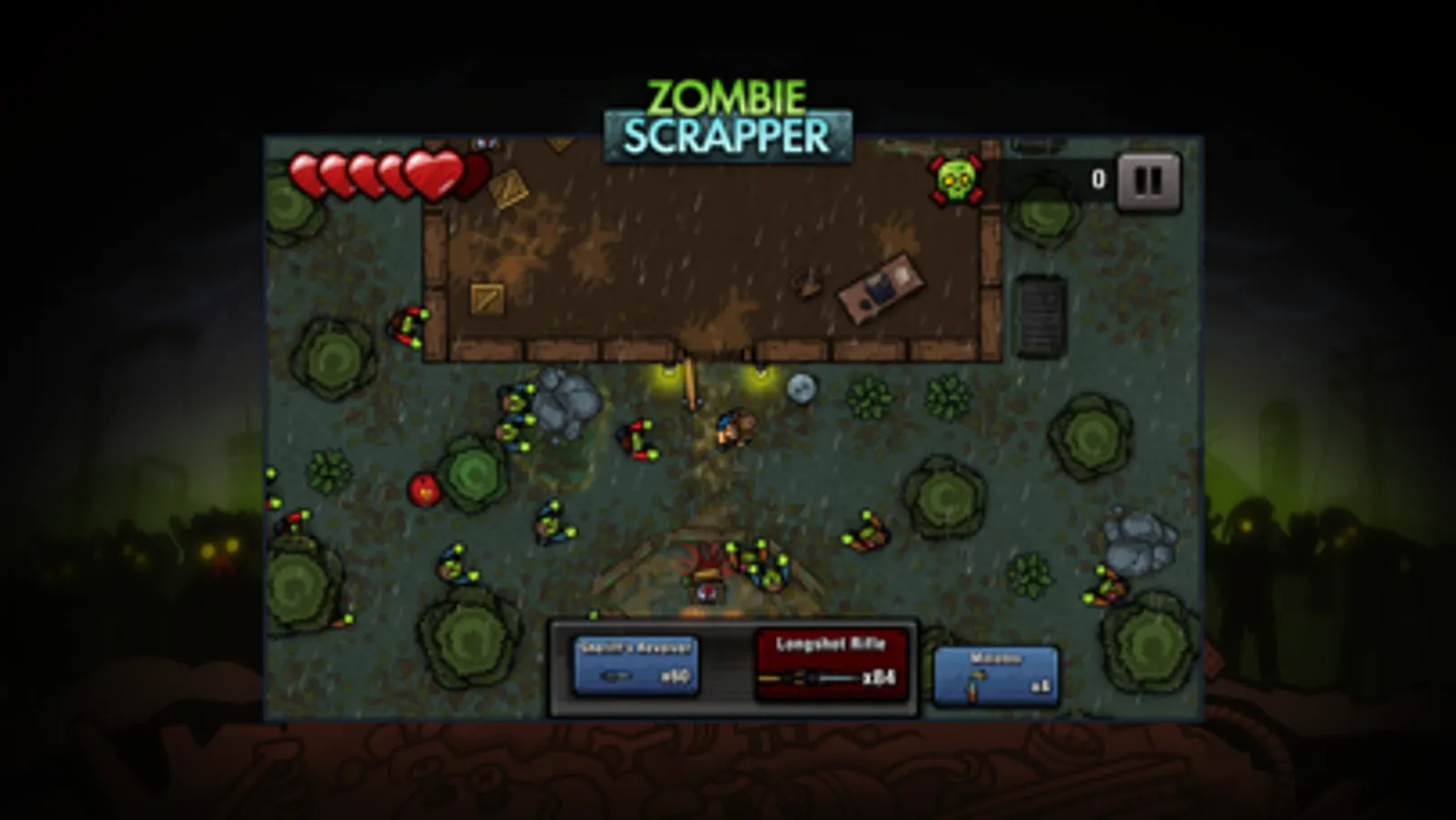 Zombie Scrapper is a twin stick shooter that will test your survival skills! Battle through an onslaught of zombies; not just your regular undead horde, but also fast, beefy and even exploding zombies! Be sure to collect as much scrap as you can to even the odds in this intense zombie thriller!
