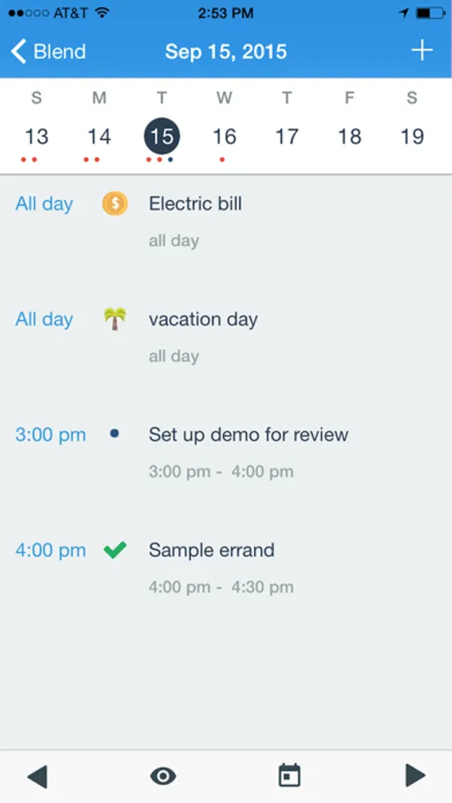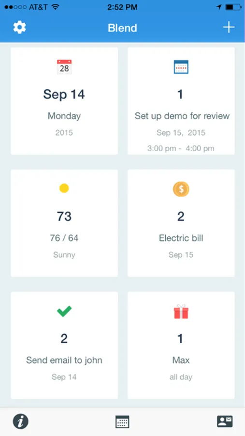 Blend is an organizer and smart calendar to help you easily manage daily activities.It provides a very unique and intelligent way to access your events, friends birthdays, weather, vacations, bills, alarms, sports schedules and more.