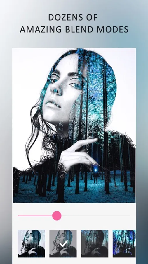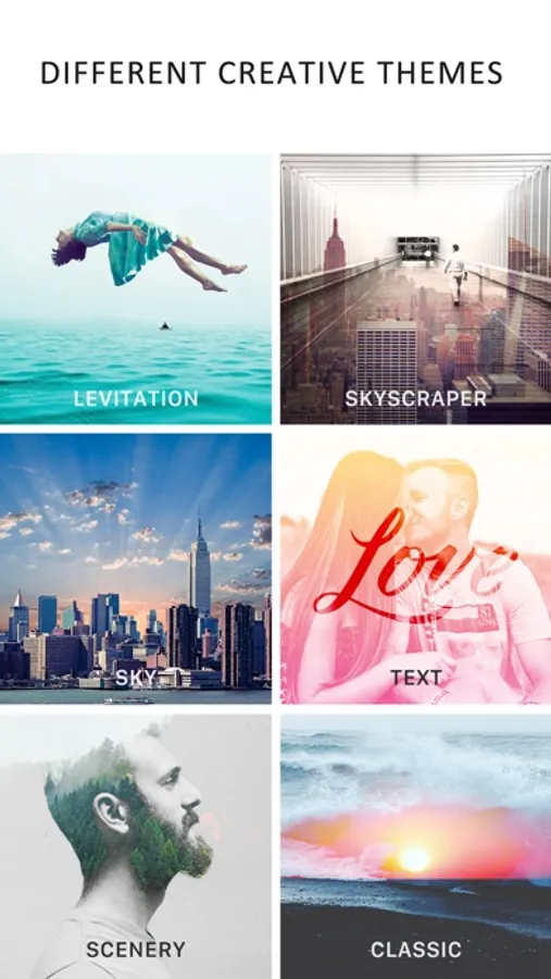 Blend Editor makes it easy to blend two photos to create a double exposure effect! With 5 artistic photo collections and a variety of real-time blend modes, you can totally follow your passion to improvise with greater ease!